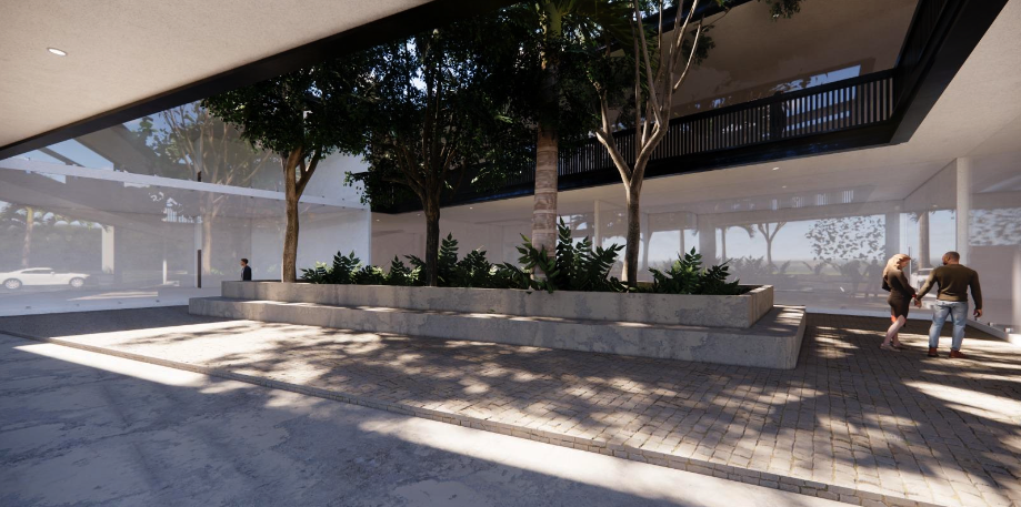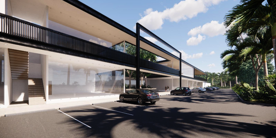 Espacios comerciales a pie de carretera. Cumpliendo dos funciones, la de brindar servicios a nuestros condominios y a la zona en general. Y por otro lado delimitar la zona de la carretera de nuestra zona residencial eliminando el ruido propio de la vía y separando los accesos. De esta forma el acceso a Salama sera por la calle perpendicular a la carretera. Por otro lado la zona comercial tendrá el flujo mayor con entrada directa de la carretera a través de un carril de desaceleracion.